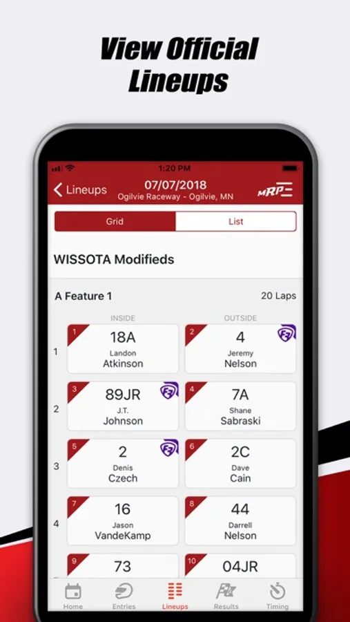 MyRacePass (MRP) gives you real-time access to lineups, results and information from thousands of race tracks. Follow your favorite tracks and series for quick access and stay up to date with all the racing action!