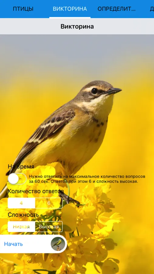 Определитель - специальная форма, с помощью которой вы можете получить точное название и описание птицы, встреченной в природе.