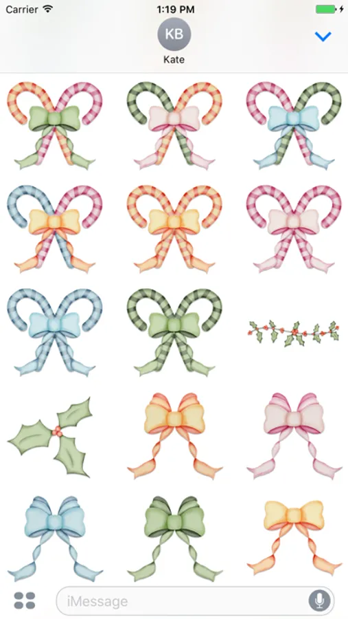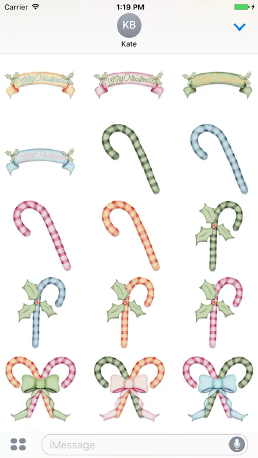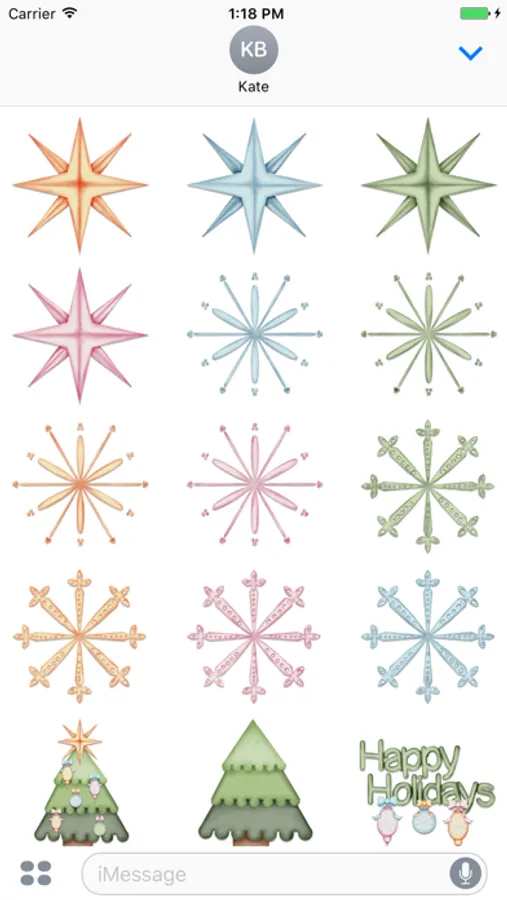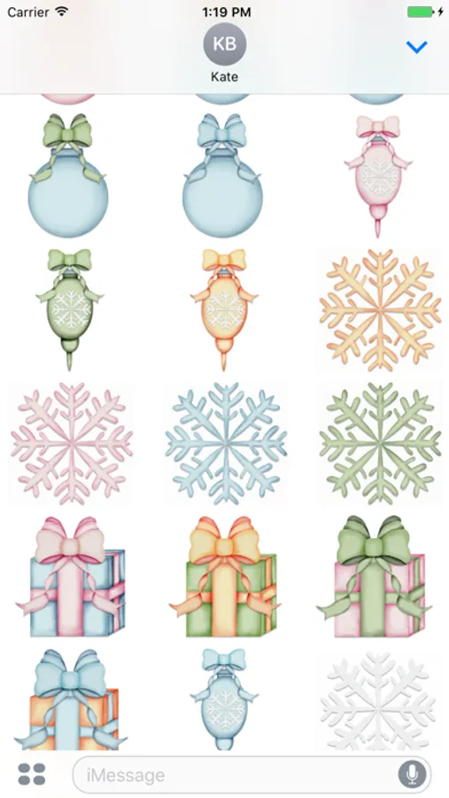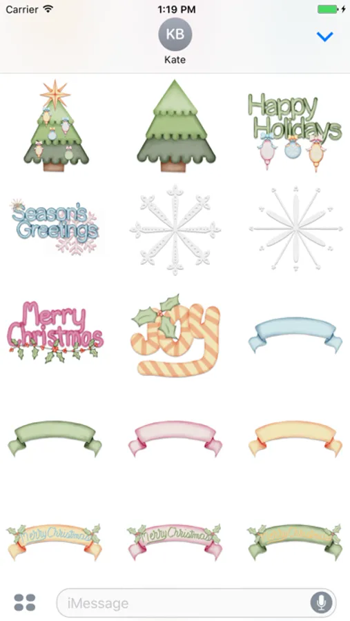 Add some Christmas cheer to your iMessages with the watercolor styled holiday decorations featuring hand lettered original illustrations with just a touch of snow white glitter.