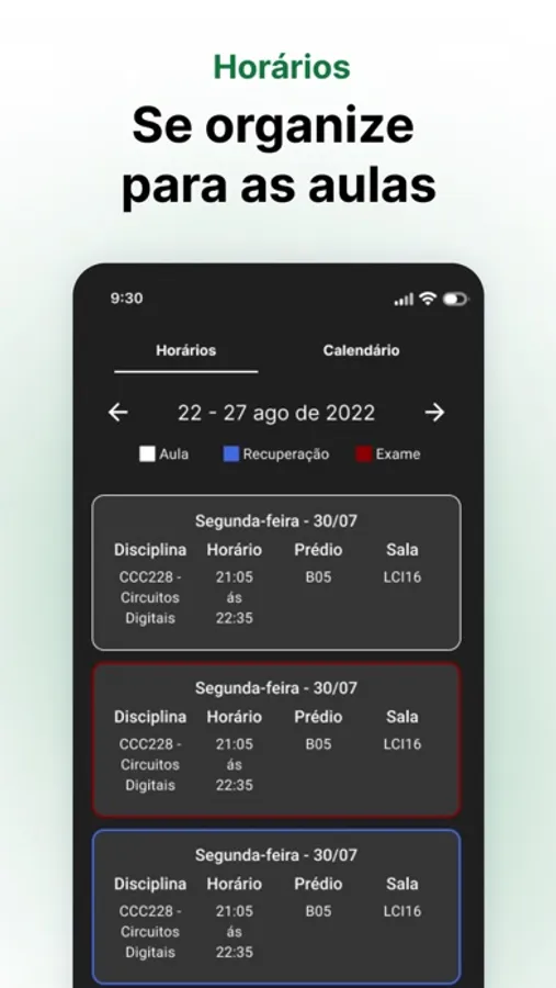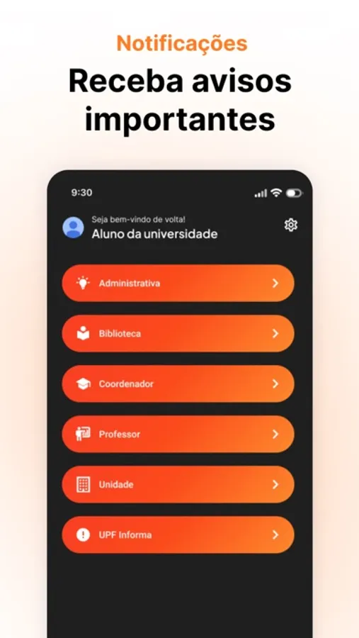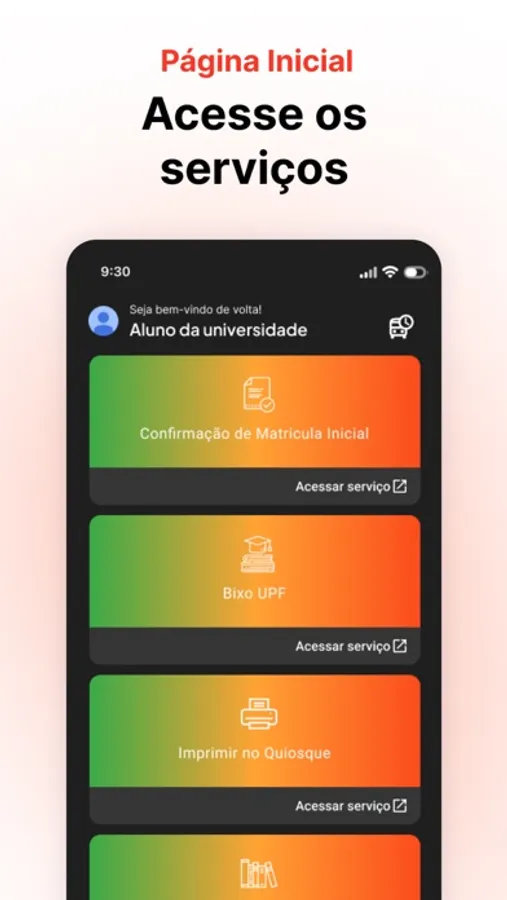 • Acesso rápido aos sistemas de rematrícula e outras informações, como: calendário acadêmico e horário do ônibus interno.