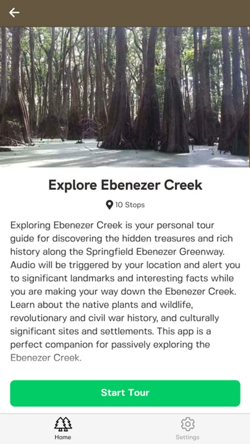 Exploring Ebenezer Creek is your personal tour guide for discovering the hidden treasures and rich history along the Springfield Ebenezer Greenway. Audio will be triggered by your location and alert you to significant landmarks and interesting facts while you are making your way down the Ebenezer Creek. Learn about the native plants and wildlife, revolutionary and civil war history, and culturally significant sites and settlements. This app is a perfect companion for passively exploring the Ebenezer Creek.