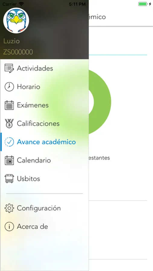 Ofrece acceso a Horario, Calendario de exámenes, Calificaciones, Avance académico, Calendario escolar, Perfil académico y Usbitos.