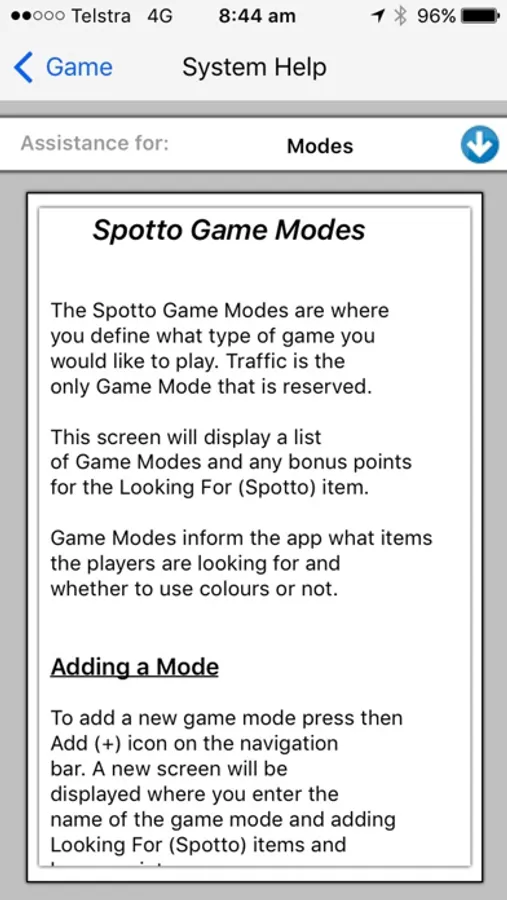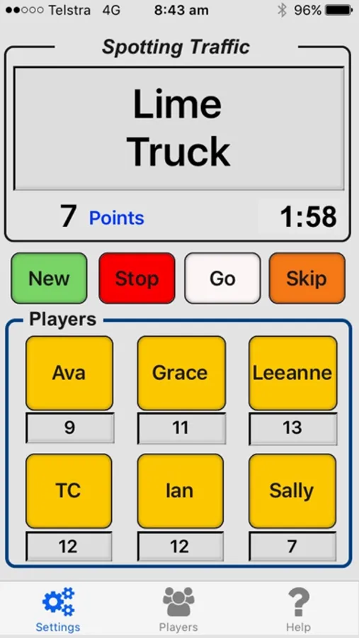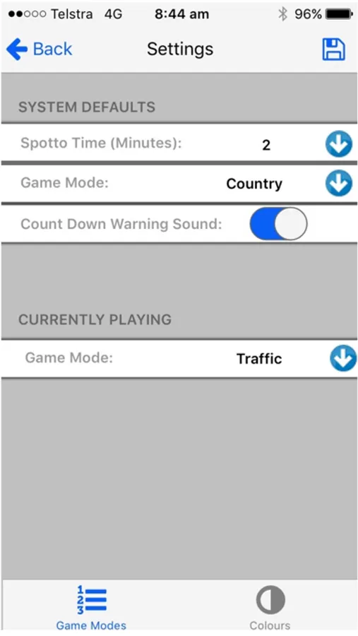 Users of this game can create and manage their own game modes, what colours and items to "spot". Points are assigned to colours and additional points can be assigned to "spotto" items.