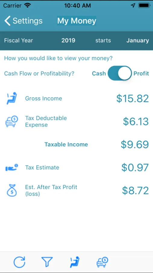 • My Money: entering all income and expense creates Profitability and Cash Flow estimates