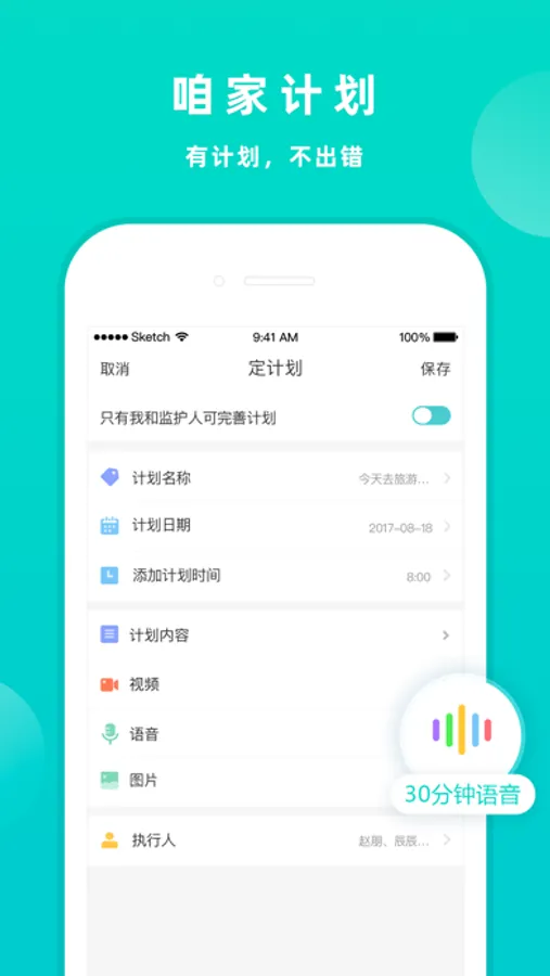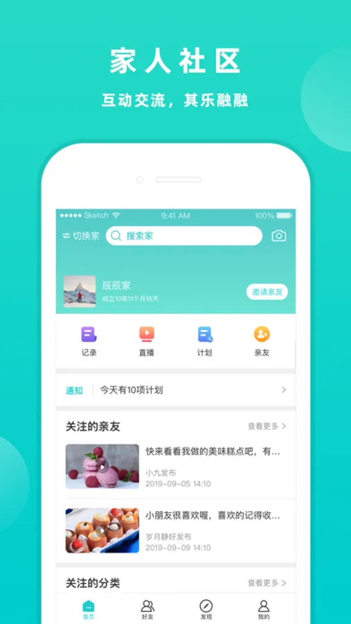 家人可发帖、互动交流,还可统计家人活跃度,分为咱家记录、达人榜、咱家计划版块: