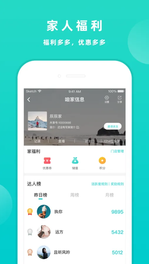 可设置规定时间内,亲友邀请其他人进家,可以获得优惠券、达人分数奖励。