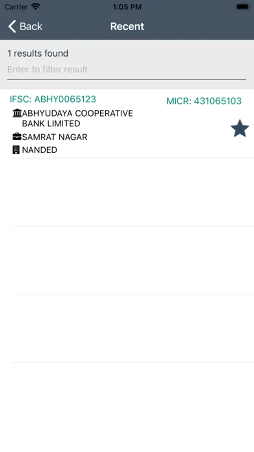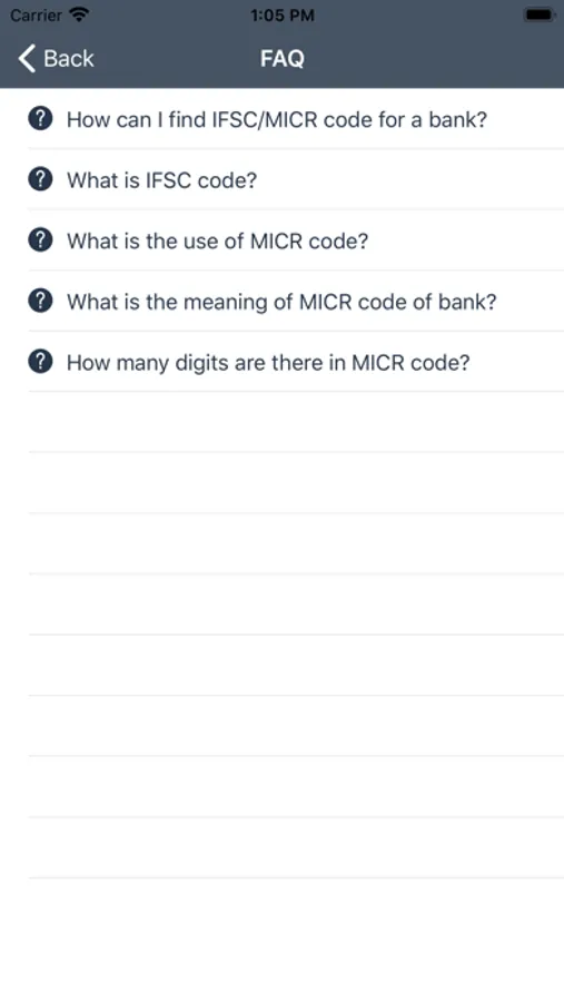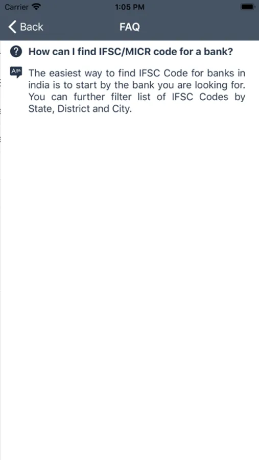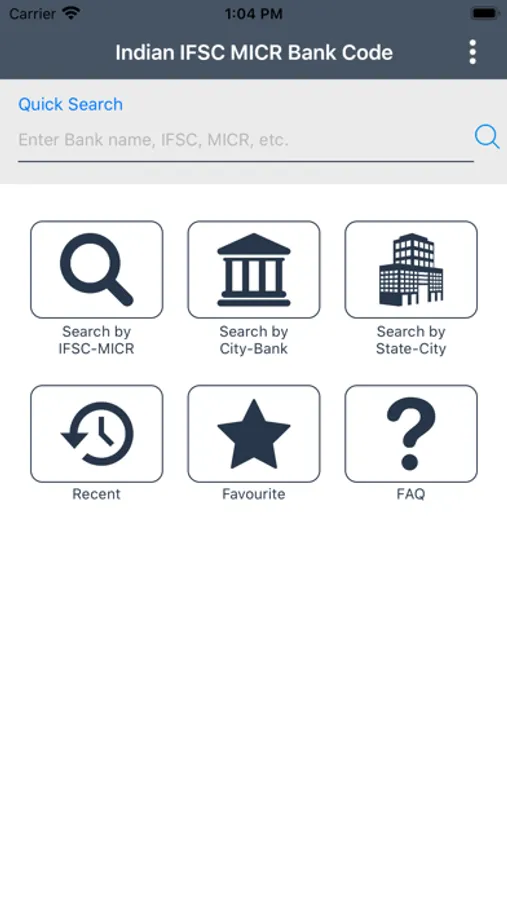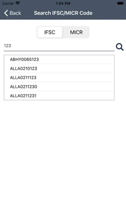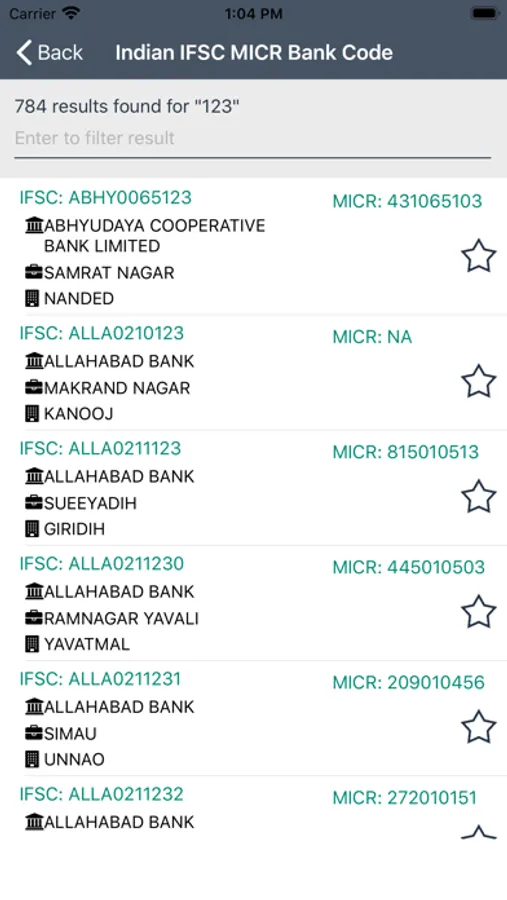 » App includes IFS Codes from 186 banks across India. Details includes IFSC, MICR Code, Branch Name, Address, Contact No, City, District, State