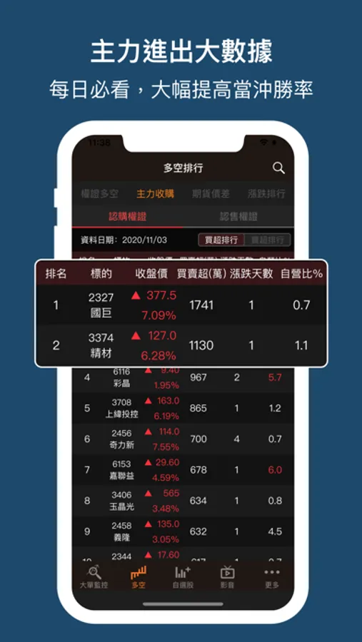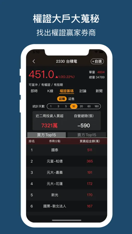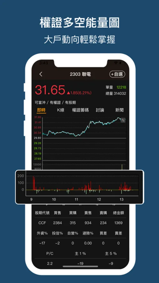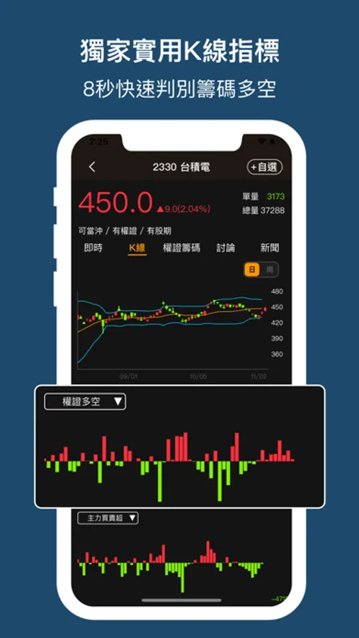 觀察主力的動向,是決定獲利的重要關鍵! 最適合短線交易的股市APP,盤中快速掌握股票、權證、股票期貨的大單動向。趁股價回檔,就能搭上主力順風車,抓住獲利機會。