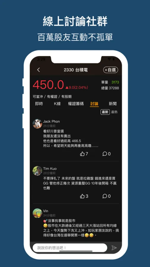除此之外,還有全台最大股市討論區,一同討論股票看法,投資股票不孤單。