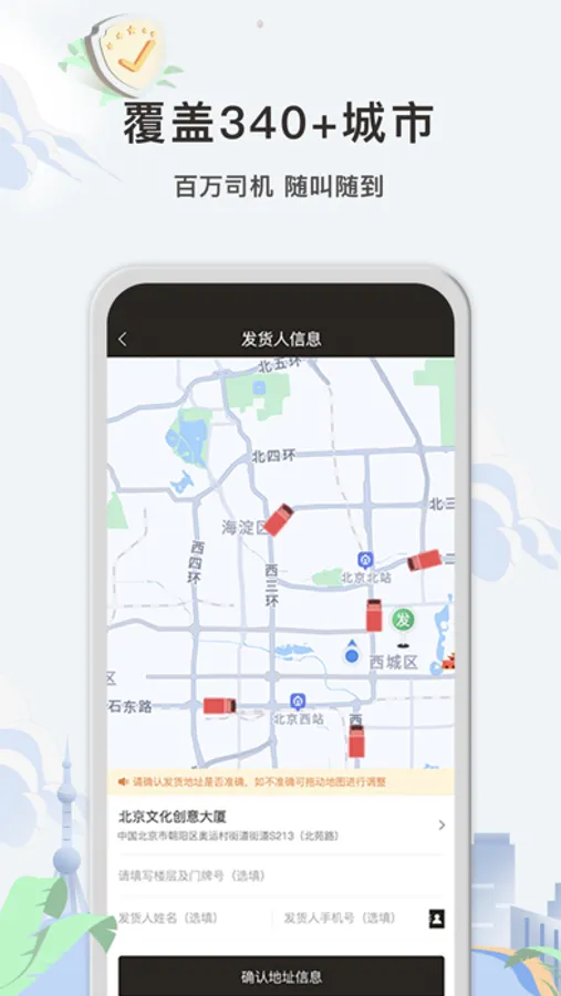 企业用车场景:五金建材运送、食品生鲜配送、花卉绿植运输、百货服装、家具电器、物流快递运输、广告印物、设备运输、公司搬家等等……一键叫货车,轻松解决!