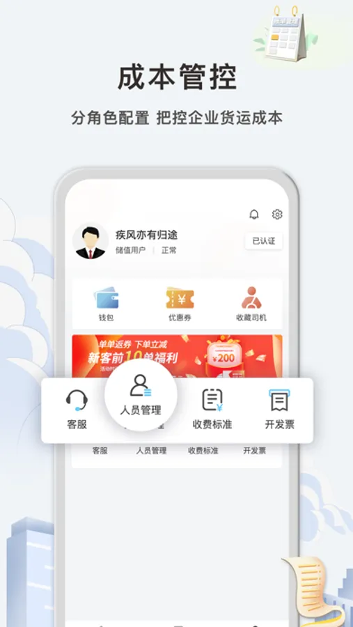 理、发票管理、员工管理、订单管理、成本管理、风险管控、司机管理等。