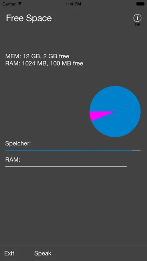 This app shows the occupied and free memory clearly. It was designed for easy viewing and operation. In addition, the free memory space can be "read" (voice output).