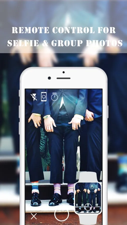 Photo Capture using Apple Watch as remote shutter, with live preview when capturing, choice of front or back camera, flash controls, countdown timer, etc.