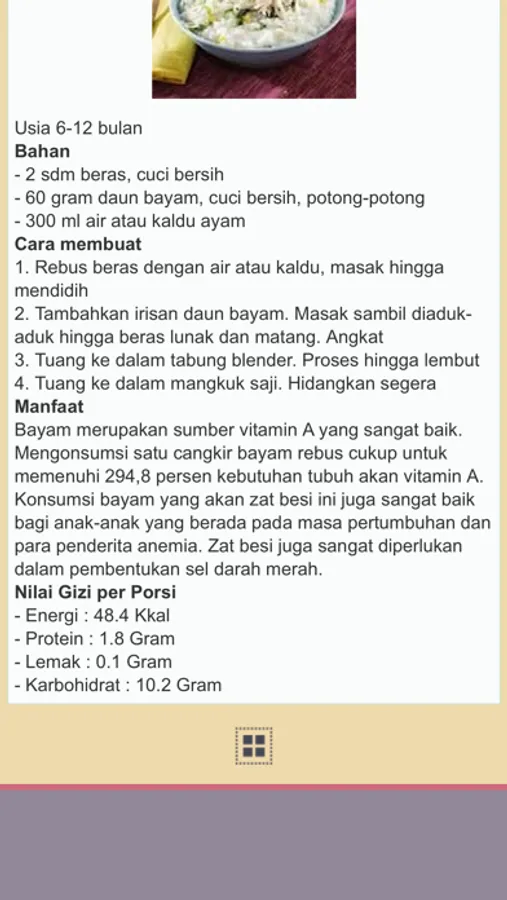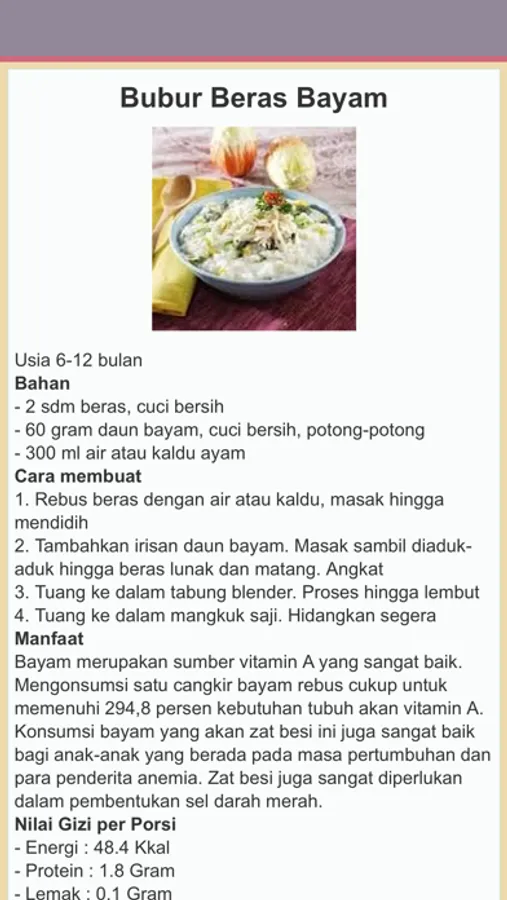 Resep Masakan Bayi adalah aplikasi aneka resep masakan Indonesia / Nusantara untuk bayi.
