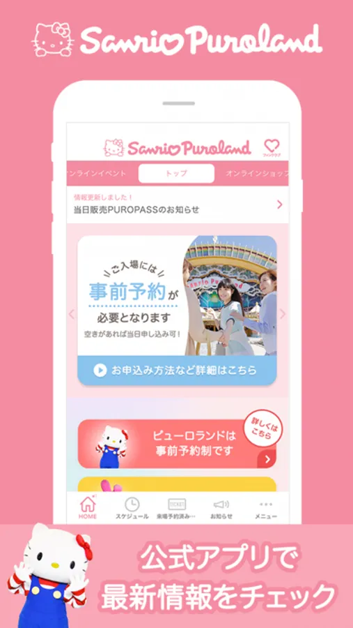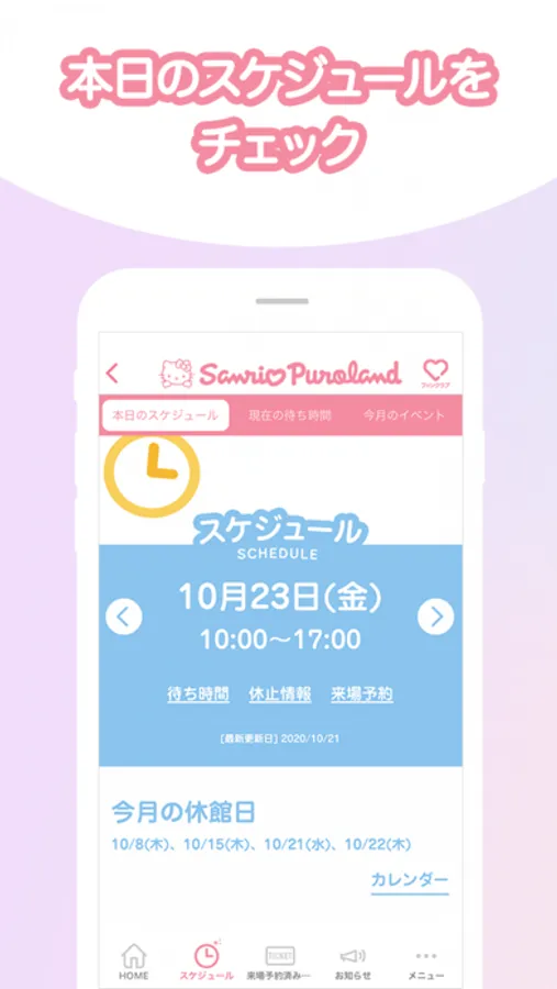 サンリオピューロランドのスケジュール、イベント情報がチェックできる!