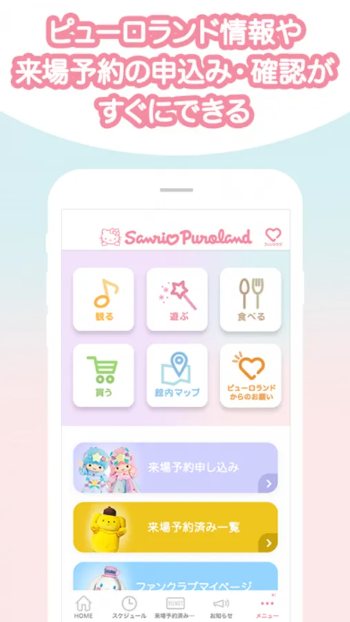 ピューロランドの最新情報やお得な情報、来場予約のリマインド(※アプリからピューロランドファンクラブへのログインが必要となります。)などをプッシュ通知でお知らせします。