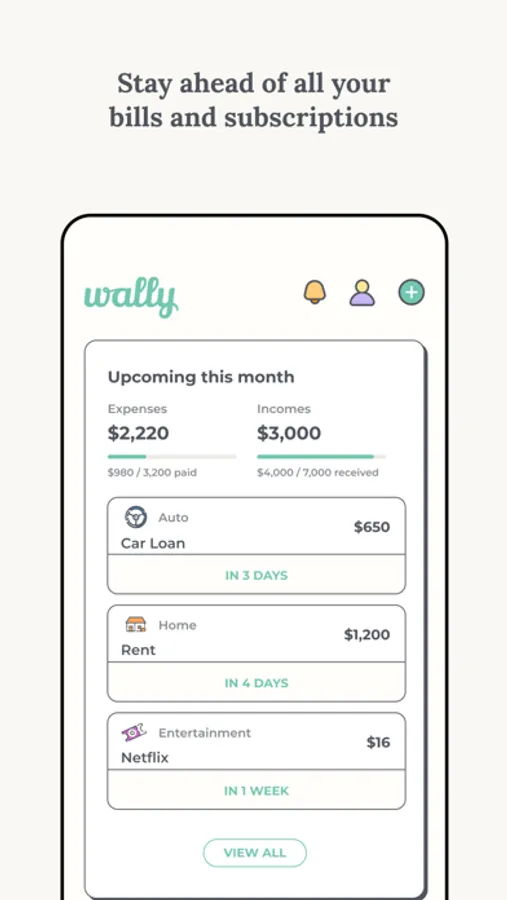 Learn how Wally honors and protects your privacy at wally.me/privacy and wally.me/terms. For help, please reach us at hello@wally.me.