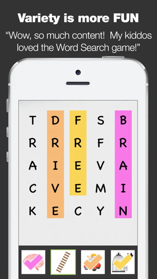 - Huge variety of words - over 200 in total keeps kids interested