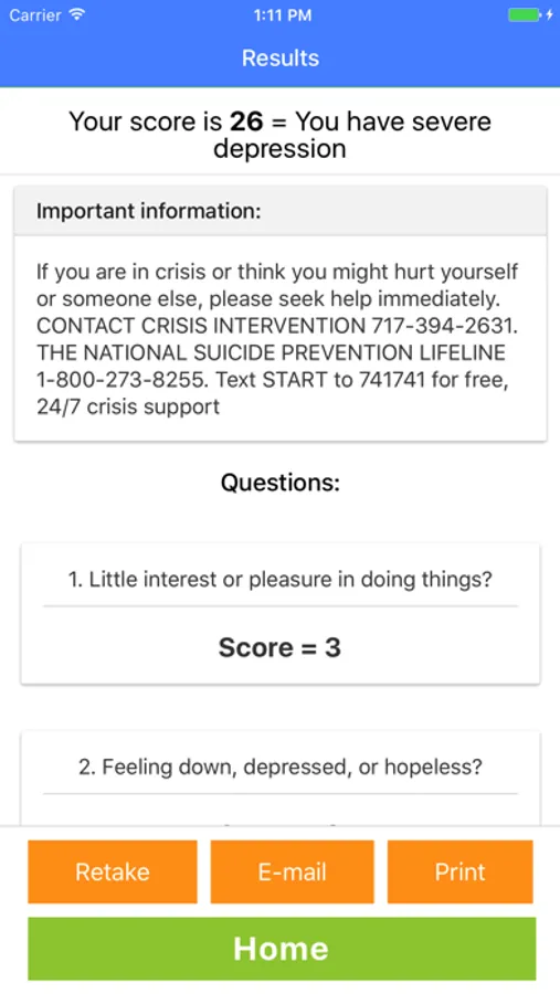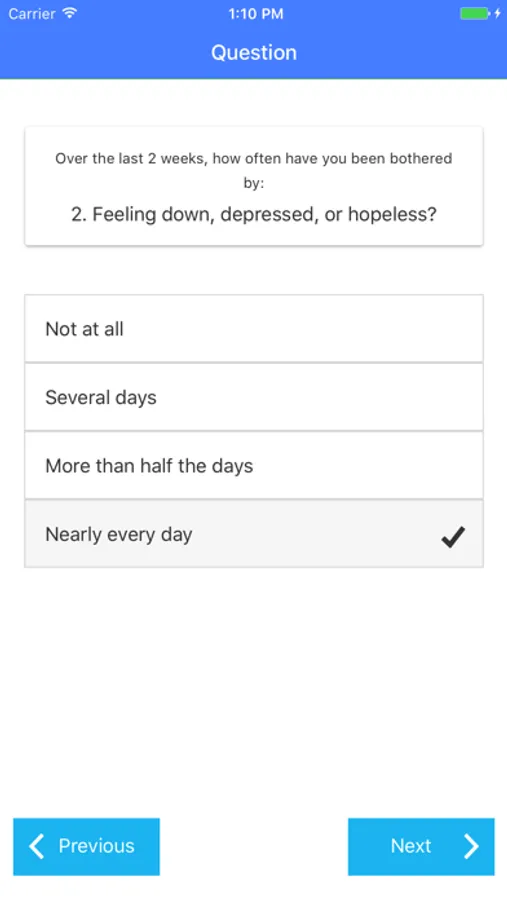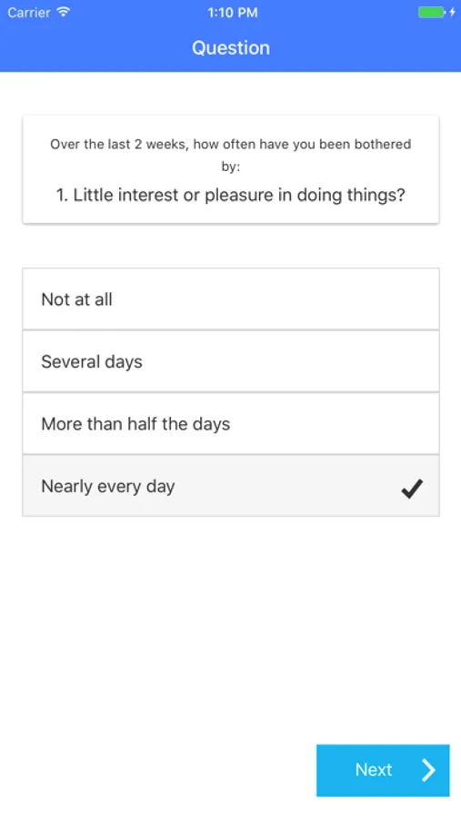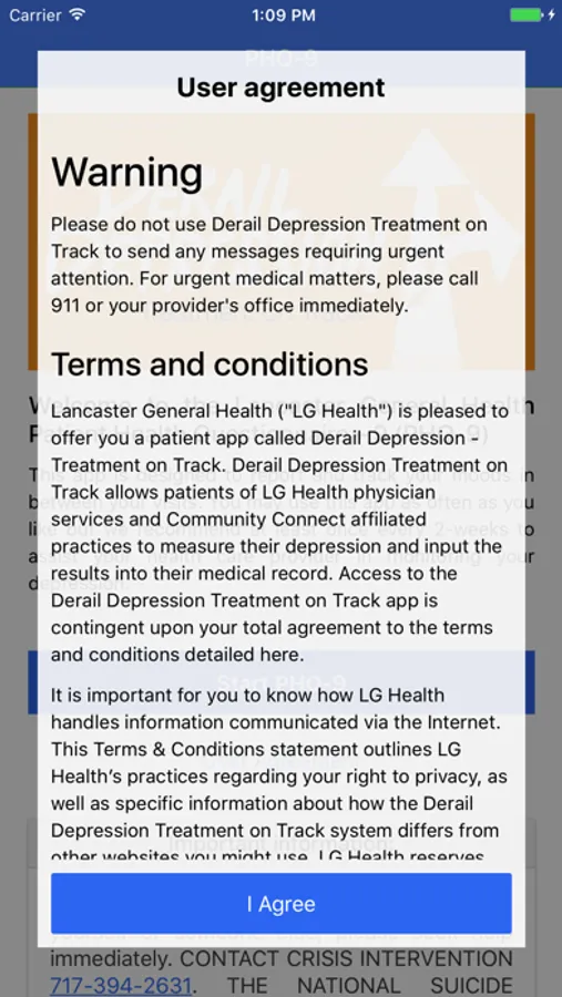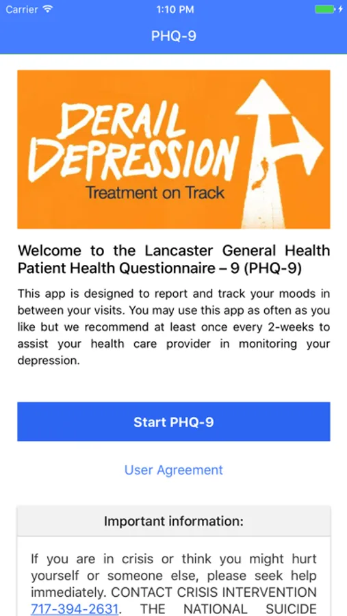 This app is designed to report and track your moods in between your visits. You may use this app as often as you like but we recommend at least once every 2-weeks to assist your health care provider in monitoring your depression.