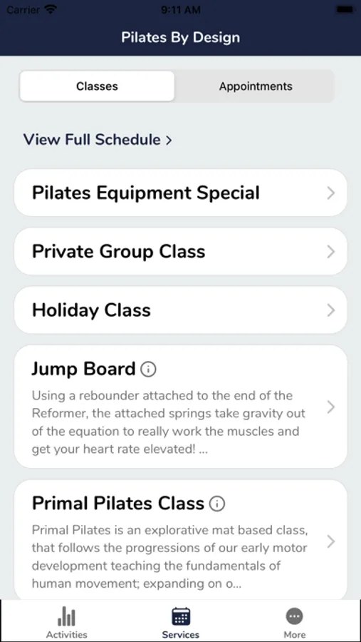 Take control of your own schedule with the Pilates By Design App. With the schedule at your fingertips you can enroll and cancel classes all from the convenience of your phone. Easy to use and user friendly, a Pilates Class is only a couple of clicks away so you can fit fitness into any busy schedule!