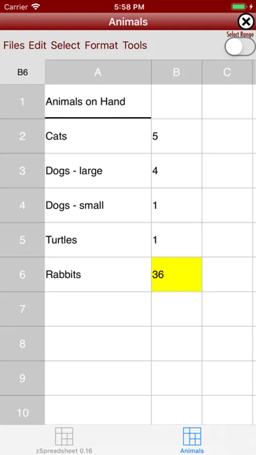 zSpreadsheet is a spreadsheet app for iPhone, iPad, and iPod touch that supports spreadsheets up to 26 columns by 2500 rows.
