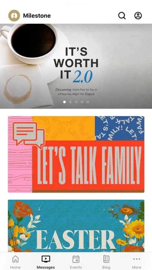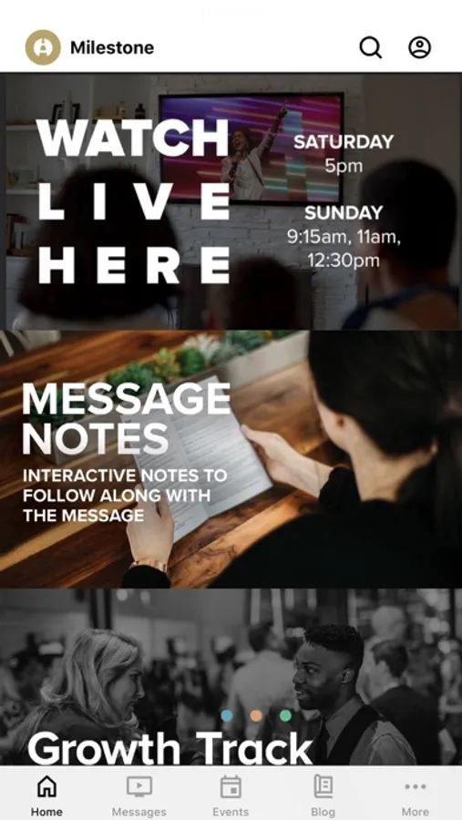 This app has been created as a free, on-the-go resource. You can watch or listen to messages, connect with others in our live online services, access event information, find a Small Group, read Milestone Life stories, and much more.