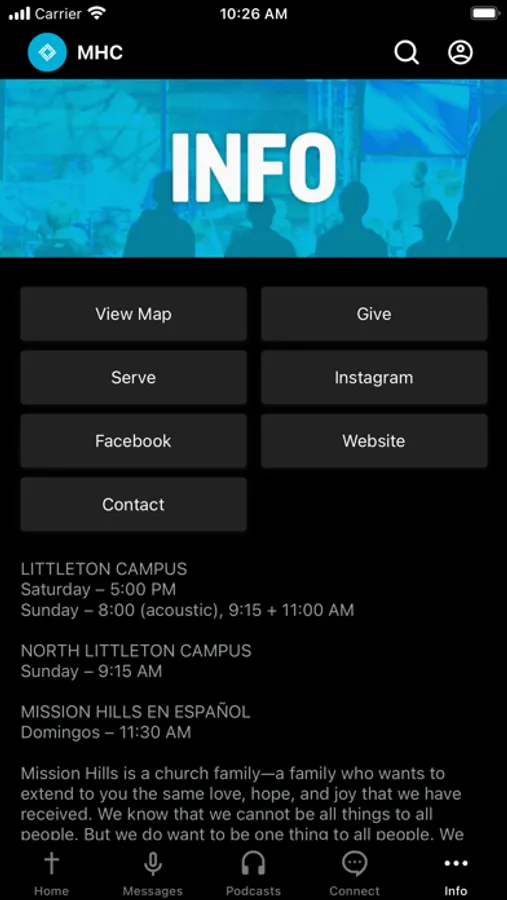 The Mission Hills Church App was created with the Subsplash App Platform.