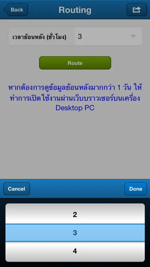 - Routing การดูข้อมูลเส้นทางการเดินทางของยานพาหนะตามช่วงเวลาที่เลือกไว้