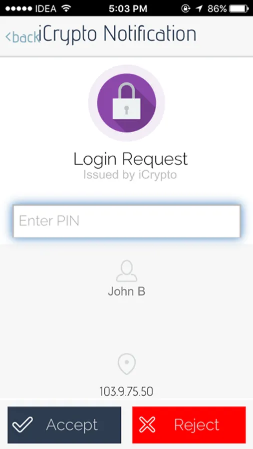The iCrypto App acts as an authenticator app for enterprise applications and third party services like Google, Facebook, Dropbox, etc as it can be integrated into existing access control solutions for a two-step verification process.