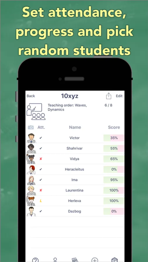 - Shake the phone or tap the dice to pick a random student