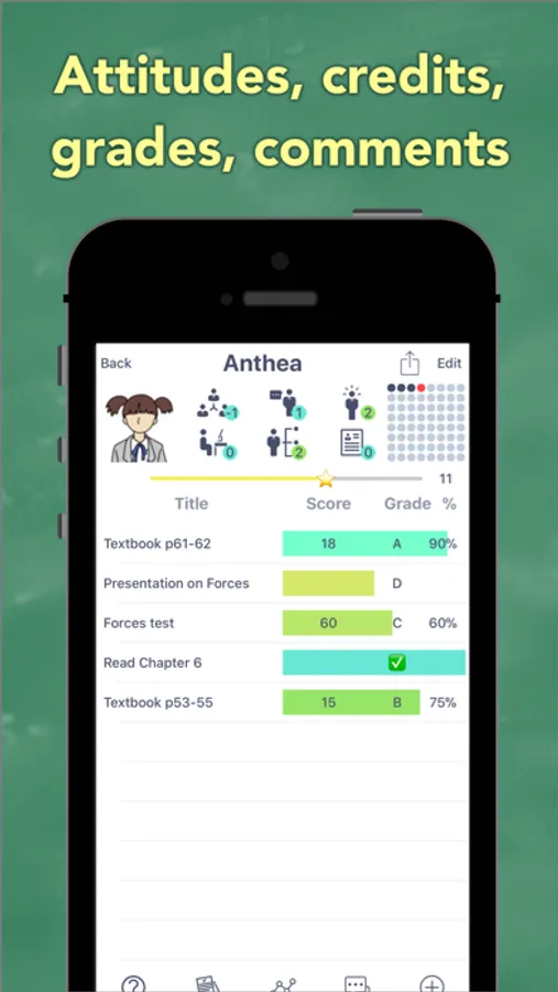 - Tap on a student to see their photo, award stars, grade attitude and more