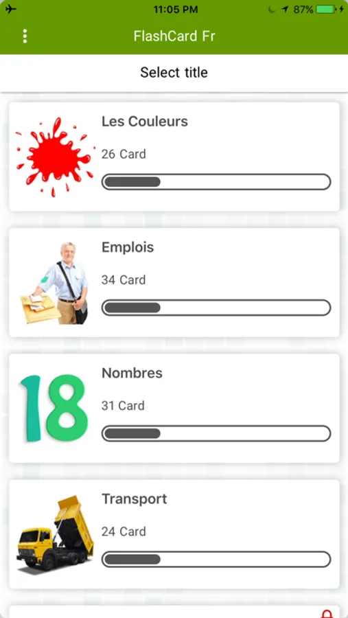 French Flash Cards application is one of the most common methods of language teaching in the shortest time. The software on the mobile can increase your rate of learning. As you know, with the help of flash cards Tips, Notes, pronunciations, dictation,... and the planned because of repeated constantly in mind if you are not perfect. This app brings you the best flash card app and it's all schoolchildren, students and people looking to propose a program for learning are excellent.