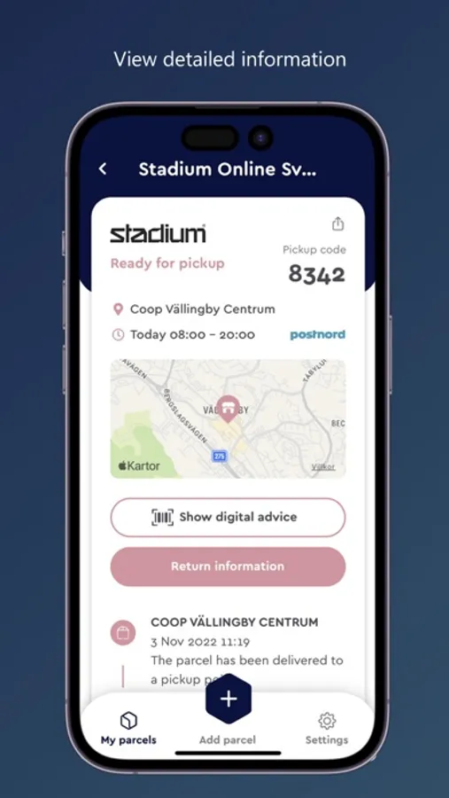 Support for many delivery services on the market: PostNord, DHL, DB Schenker, Bring, Posti, DSV, Early Bird, Premo, pinDeliver, Airmee, Budbee, Instabox, Citymail, Best, Bussgods, Matkahuolto, Kaukokiito, GLS, DPD, Dao, Helthjem, Bft, Rtc, Burd.