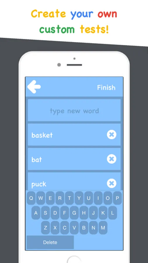 Create your own test for practice or use any of our 120+ tests to practice certain categories. Each word is spoken aloud using Siri, so even your custom tests can be spoken! With 4 colors and a light black background to choose from learning how to spell has never been so colorful!