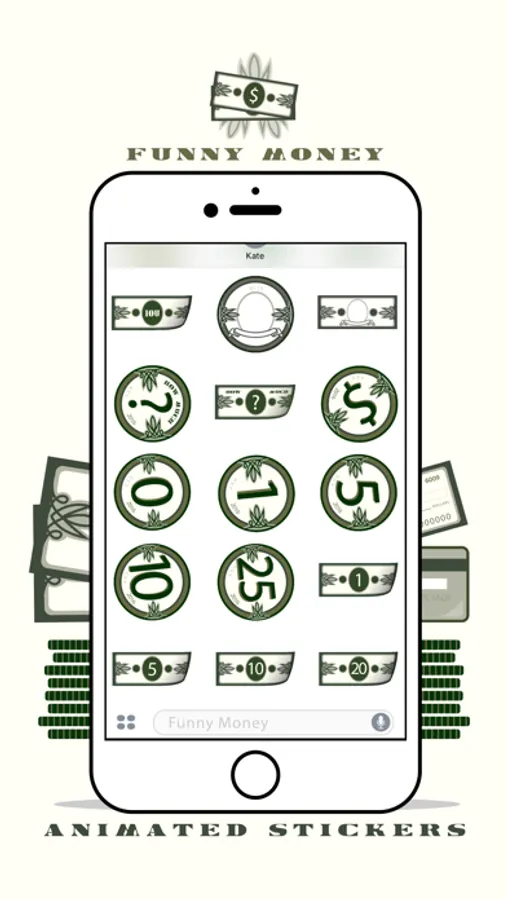 Express yourself in new ways with dynamic and animated Funny Money stickers you can put anywhere in your chat. Scale, rotate, and layer stickers—even place them on photos you send and receive!