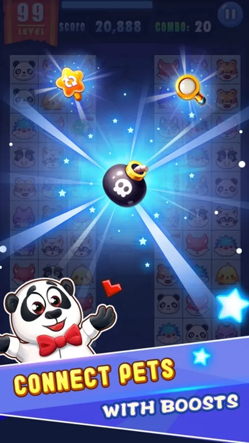 The target of this simple game is to connect two matching icons using three or fewer straight lines. It means that you must be able to connect the two matching pairs with a line that turns no more that twice and is not blocked by another icon. You are given a limited amount of time to accomplish this for all of the pairs of icons at each level. You also get points for time remaining at the end of each level.
