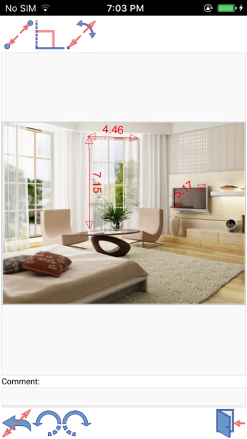 With professional version you can synchronize your mobile device with laser rangefinder, it's very effective tool if you often works with real estate drawings. In this version adds the function of connection to rangefinder by Bluetooth to transfer measurings to the app.