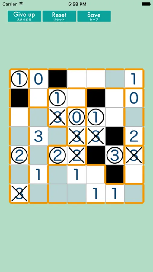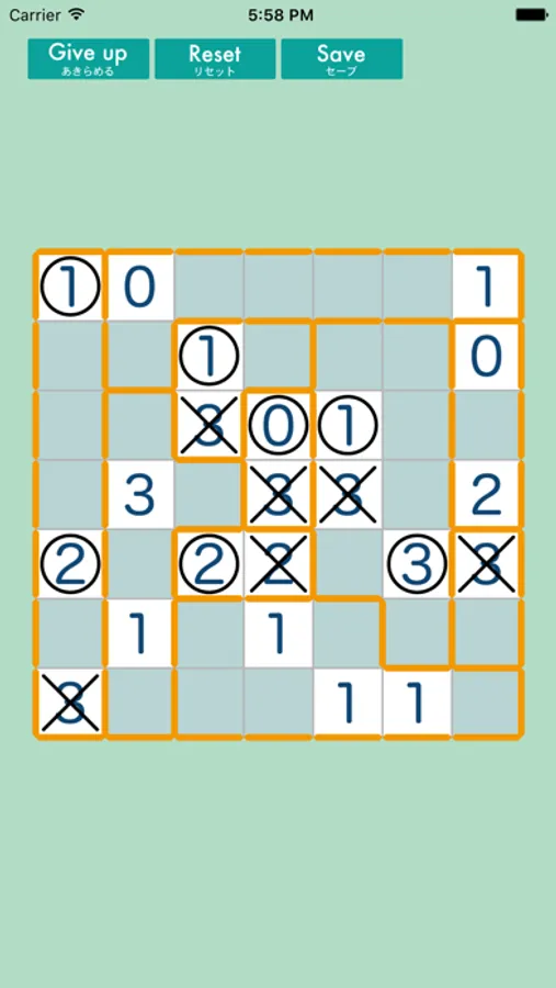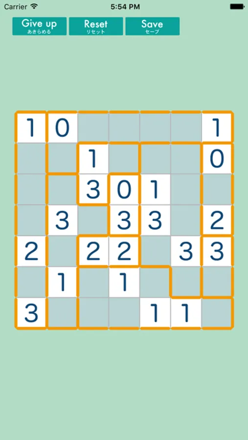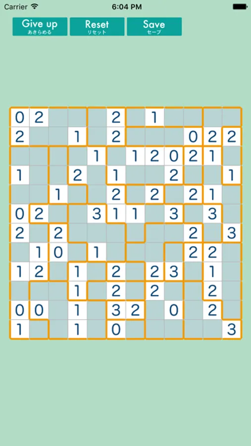 The grid is divided into variously sized rectangular "rooms" by orange lines following the edges of the cells.