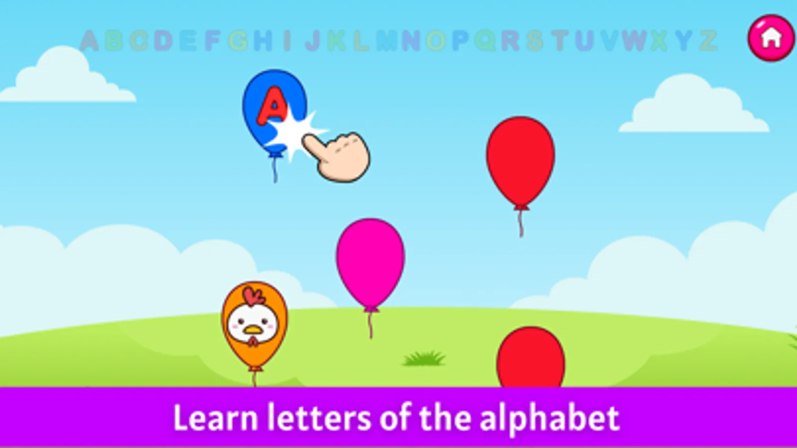 A-Z: Pop balloons containing alphabet letters and learn the alphabet.