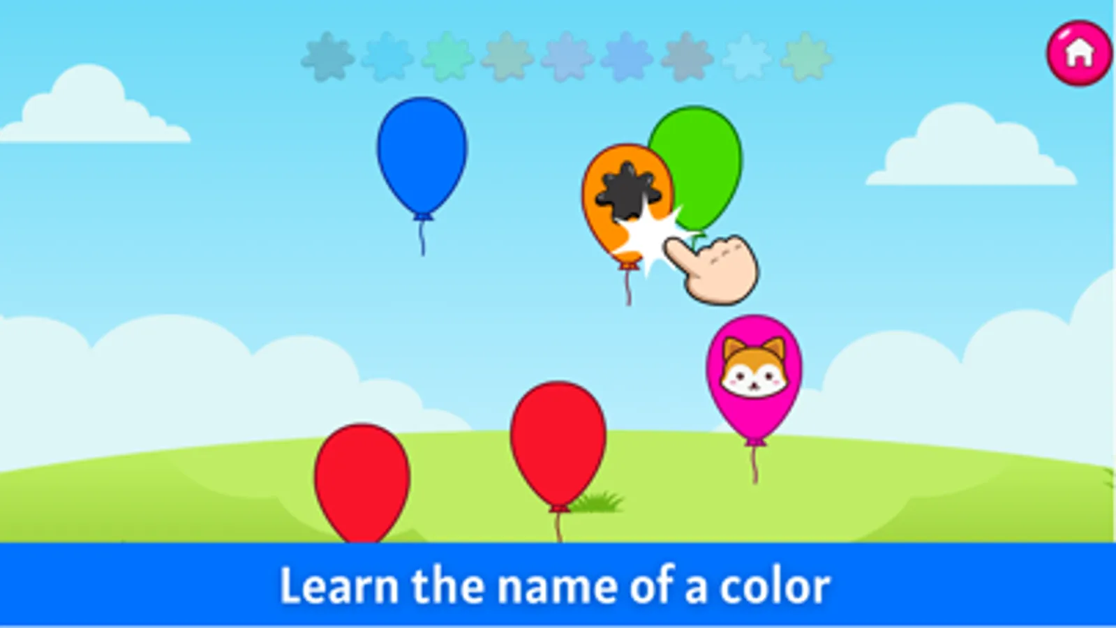 Colors: Pop the balloons containing the colors and learn the names of these colors.