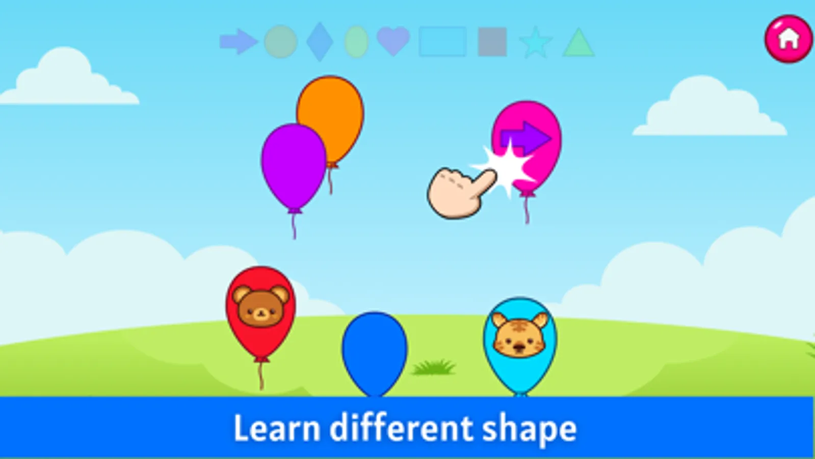 Shapes: Pop the balloons with shapes such as squares, triangles, and circles and learn the name of each shape.