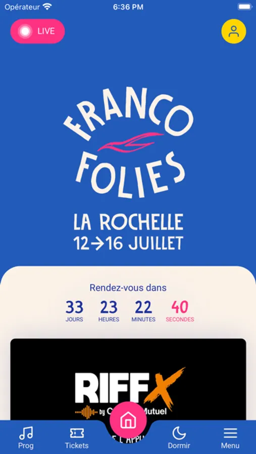 Bienvenue sur l’application officielle de la 39ème édition des Francofolies de La Rochelle - du 12 au 16 juillet 2023 !