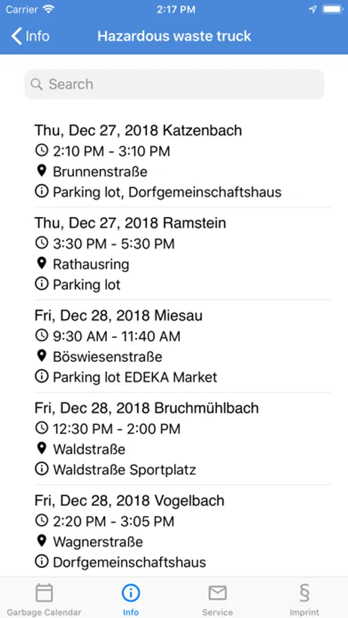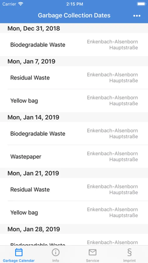 This app reminds you of upcoming garbage collection dates in the County of Kaiserslautern.