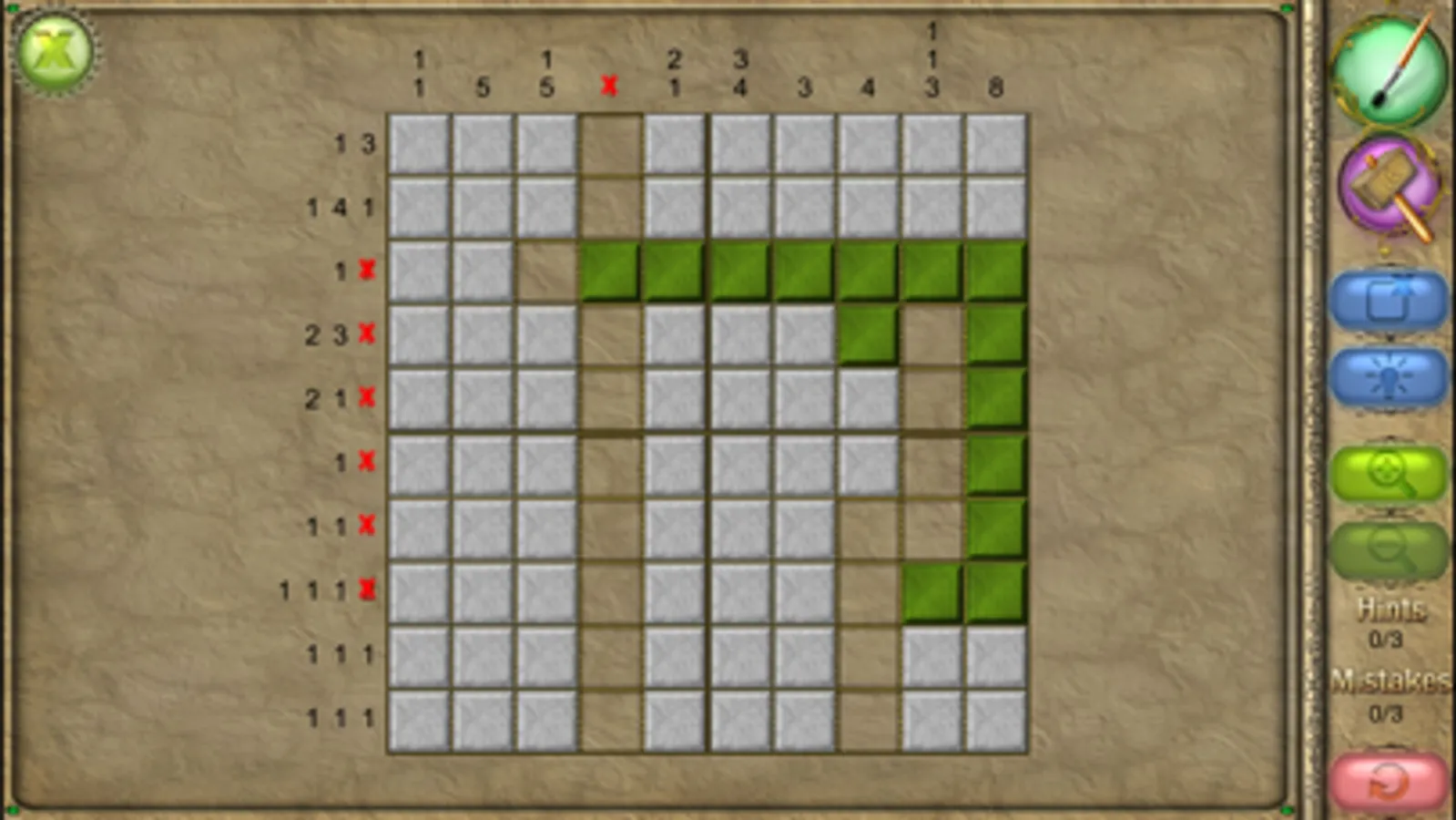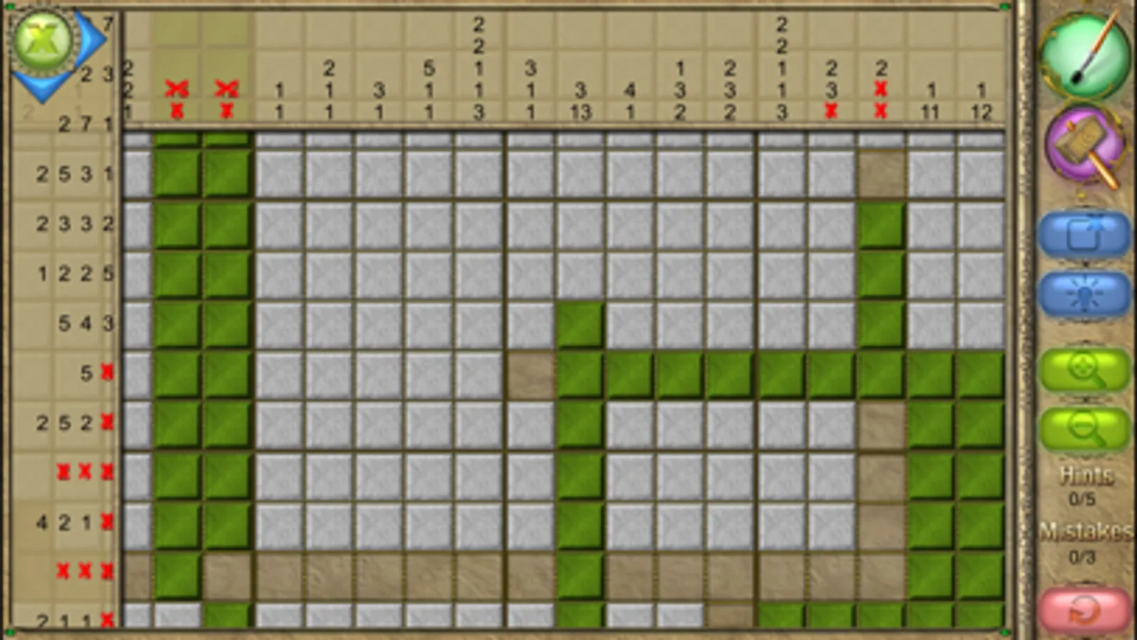 An old Japanese logic puzzle takes on a new look with FlipPix Jigsaw! Touch tiles to paint them or break them to form colorful images. The goal is to use logic to determine which tiles should be filled to reveal a hidden picture.