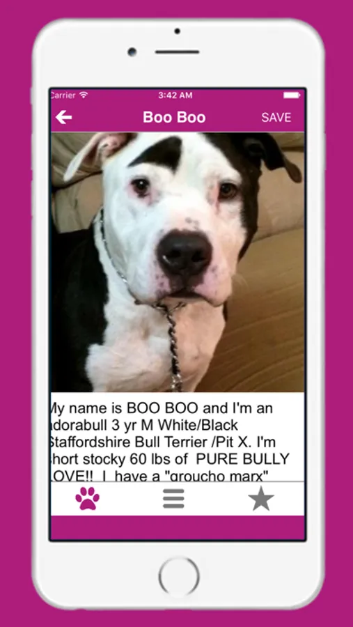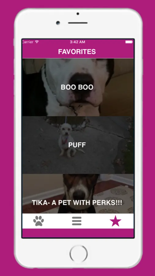 Pets offers the ability to search more than 370,000 pets from 14,000 adoption groups! Find your perfect pet, see adorable pictures, read relevant pet information, and you can even favorite the pets you like!