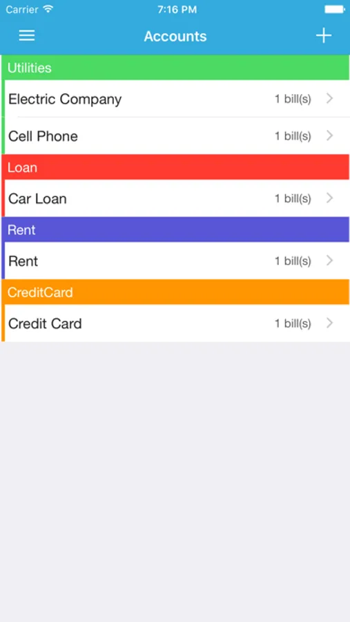 - Manage accounts and bills easily with colorful category