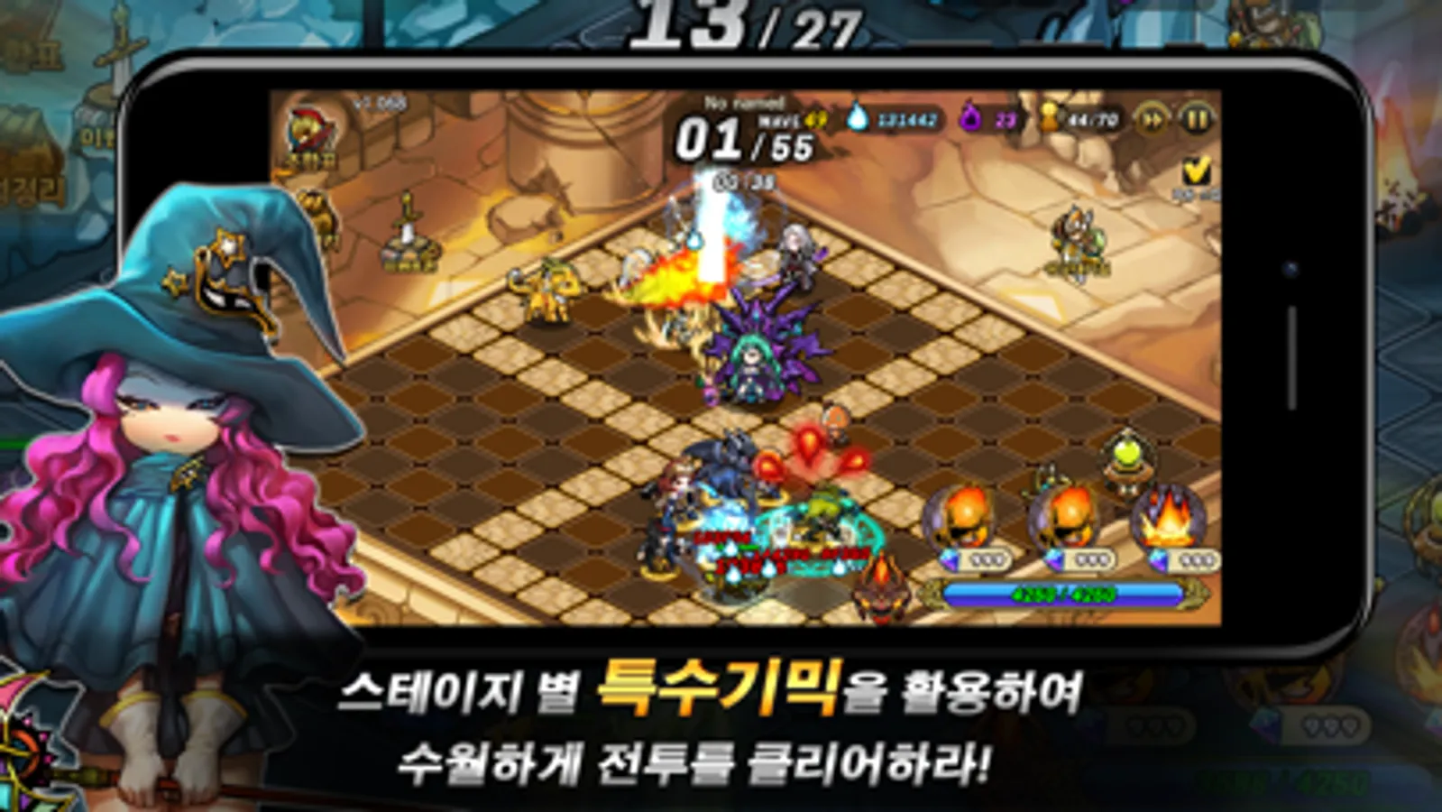 매 웨이브마다 주어지는 영웅을 모아서 강력한 영웅으로 조합하세요!