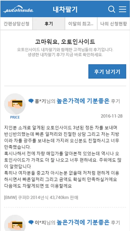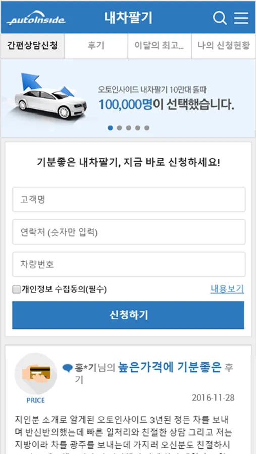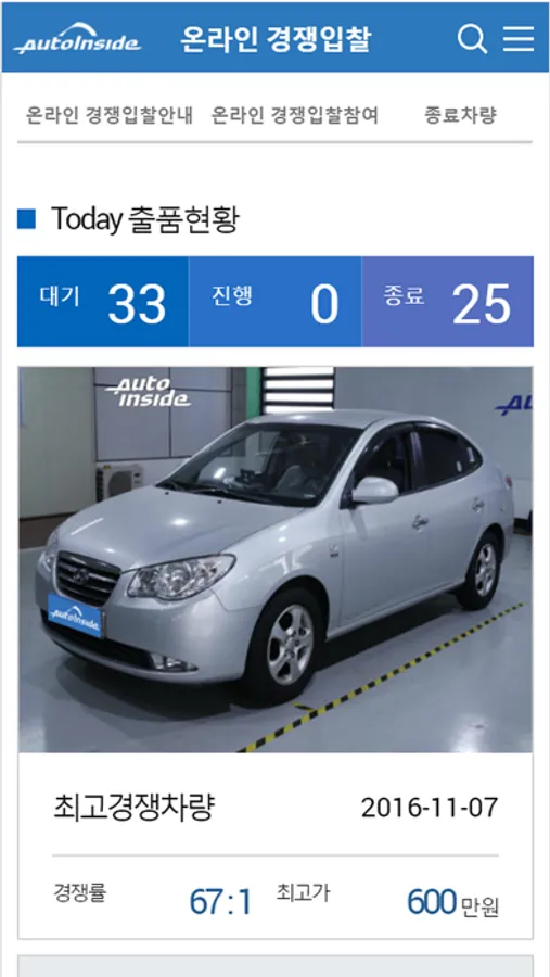 차량 판매 신청 당일, 차량 낙찰가격 확인 가능