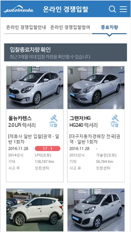 온라인 경쟁입찰을 통해 최고 입찰가가 낙찰되는 방식의 온라인 차량 매각 시스템입니다.