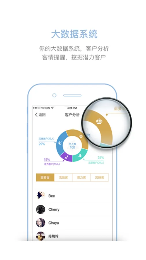 精准客户分析,合理使用,助您增进客情、增长客流量、增加客单价。